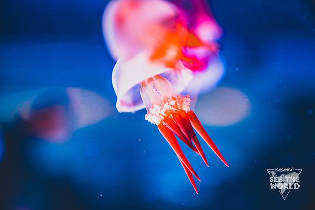 外形不仅很有特色,吸引人,里面的大型珊瑚塔和水母更加漂亮。