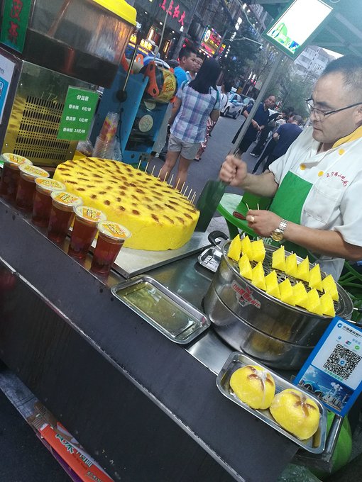 阿姨和我们介绍:“正宗的煎饼果子啊!”小姐姐想给我买,我一脸嫌弃的说,我一个天津人上这吃煎饼果子来啊,她这个也不正宗啊!把小姐姐乐坏了。。。。。我是很正经的!