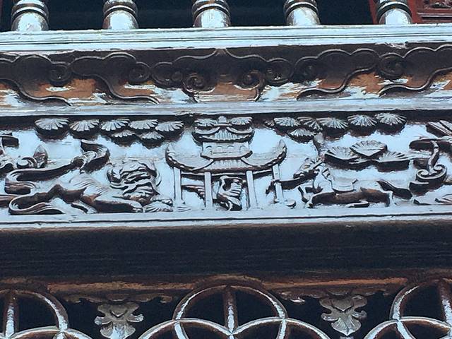 这组木雕叫做“司马亭”,取自狮子、马的谐音,大司马为古代官职。