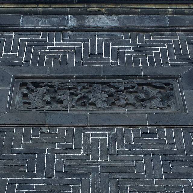 精美的砖雕——福星、禄星、寿星高高的雕刻在门上,有福禄寿门上高照的寓意。