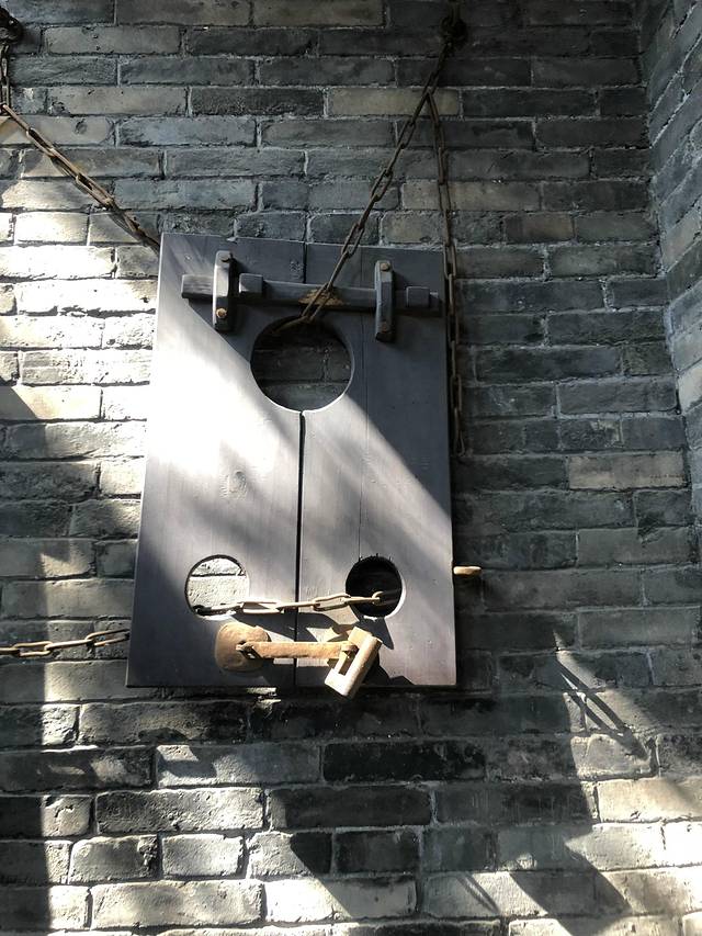进去以后,正对着的就是县衙的正堂,跟电视剧一样,整点有表演,想要看的,提前去最前面排队哦!我们站在边上的台阶看了两眼,不敢兴趣,就去了大牢。