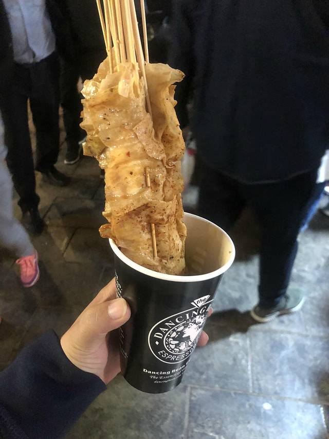 超级好吃的烤面筋,10元/3串。可惜北京被治理的没有推车卖烤面筋的了,想念。