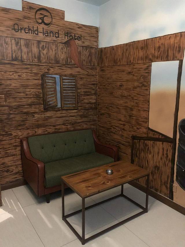 尤其喜欢这个沙发区,空间立体和墙绘的感觉完美结合。100分。