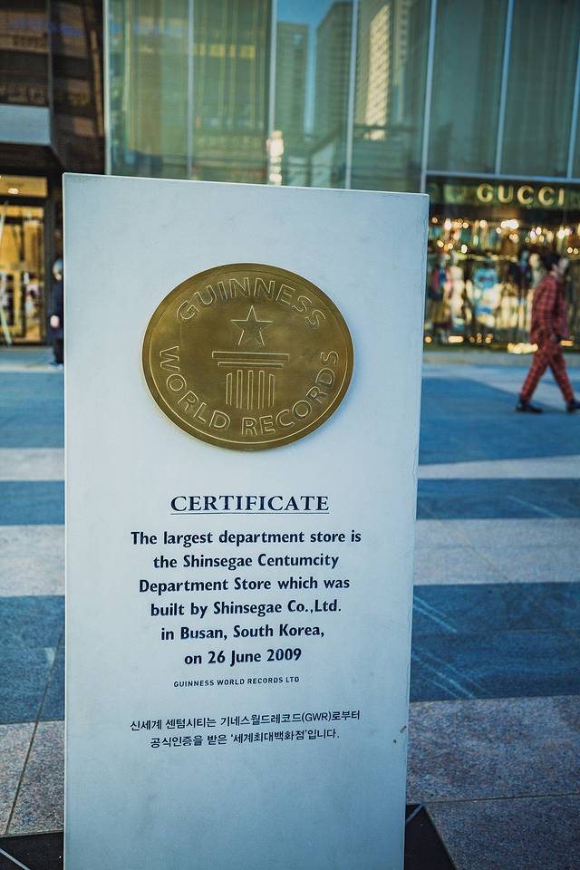 除了参观电影殿堂,从这里步行可达的新世界百货店也是你来到釜山一定不能错过的一处。新世界百货,作为“全球最大的百货店”,它于2009年被载入《吉尼斯世界大全》,而这个记录至今尚未被打破。