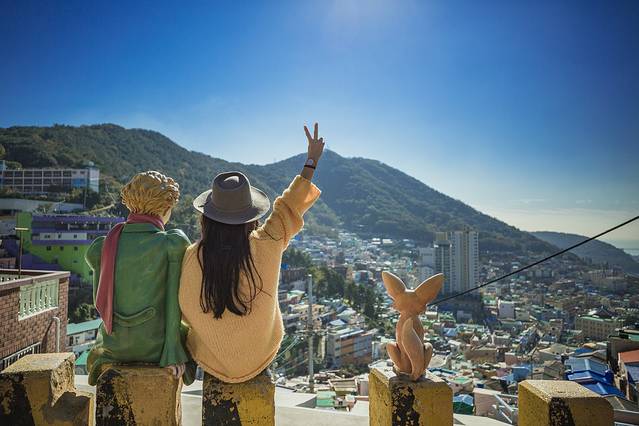 文化村内最有名的一个拍摄点就是这里了---《小王子》。在这里,你可以和小王子和沙漠狐一起俯瞰美丽的甘川文化村,一起,进入五彩斑斓的童话世界。