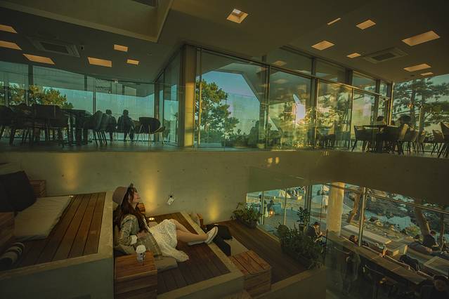 咖啡厅上下三层,每一层都有绝佳的视角直面大海,选一个舒服的沙发位窝进去吧,沐浴着和煦的阳光,轻柔的海风拂面,伴着海浪的声音,喝下那杯叫做“大自然”的咖啡,这里的一切,都太过美好,让人不忍离去。