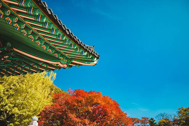 但我们这次追寻梵鱼寺而来,并不是因为它盛名的佛教,而是寻着秋天的色彩而来。据说,这里有着釜山最绚烂的秋色。
