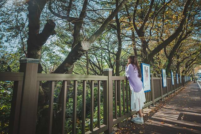 因为社区在山上,所以依山而建的散步路其实也像一个悬崖似的依着山势盘旋而上,在这里走一走,可以俯瞰山下成片的彩色小房子,也可以眺望远处繁华的釜山站和釜山港,历史与现代在这里交融。路上的行人很少,正好可以安静的感受一下釜山的慢节奏。
