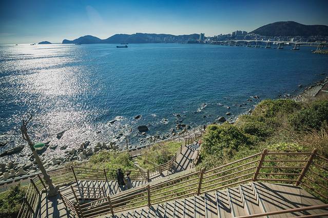 来釜山,怎能不看海。酒店选在海云台,看惯了那片海天一色的浅蓝,就想追逐一些更纯粹的蓝色,那,青沙浦踏石桥,一定不会让你失望的。那里的海,碧波荡漾,釜山,本该拥有这份碧蓝。