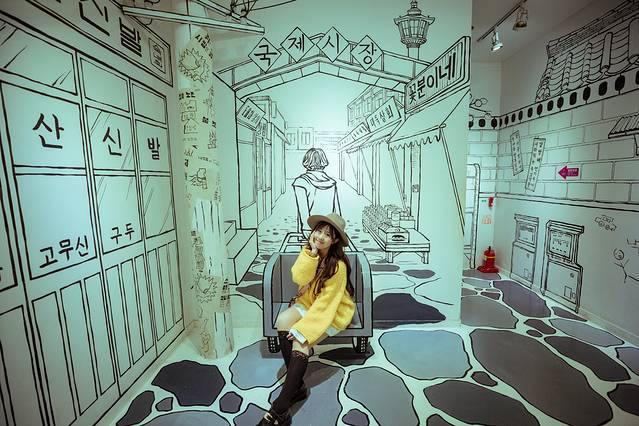 釜山塔可不仅仅是瞭望台这么简单,从电梯下来,还有一个二次元的空间,等待着你进入一个动漫的世界。