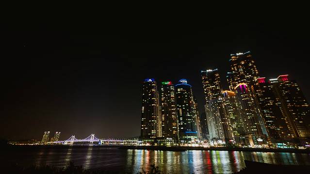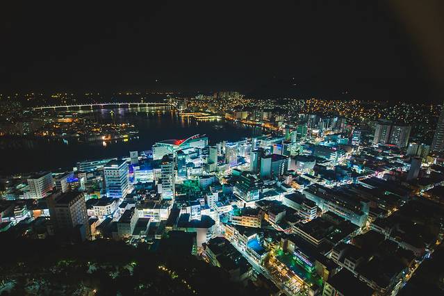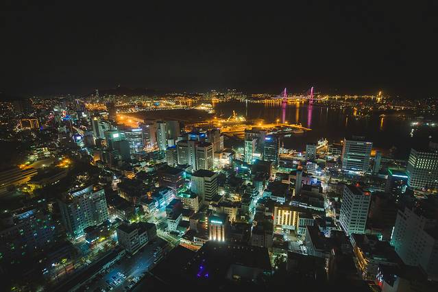 建议在夜晚前来,入夜,整个城市的霓虹亮起,高楼街巷、海港大桥、流动车流,就在这里,静静的感受釜山的脉动。
