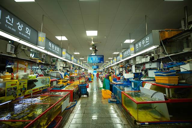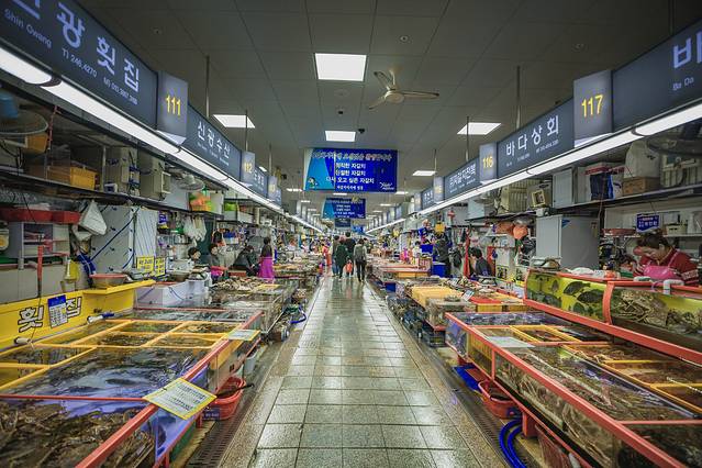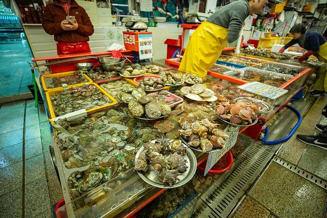 釜山靠海,是一个优渥的天然海港,得天独厚的地理位置自然让它的海鲜产品也为大众所向往,札嘎其市场就是釜山最具规模的海鲜市场,因为其海鲜新鲜肥美、价格便宜,而为大众所熟知,成为整个釜山,乃至全韩国最大的海鲜市场。所以逛一逛札嘎其市场,吃一顿海鲜大餐,也成为到釜山旅游,不可错过的一项打卡项目。