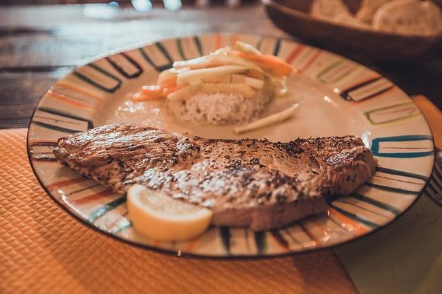 找了半天才在路边的一家小酒馆说服厨子给我们准备了午餐。可以选择的东西并不多,点了一份牛排和一份马赛鱼汤,牛排味道平平,但是鱼汤简直又一次挑战了我的味觉,实在是!太!腥!了!