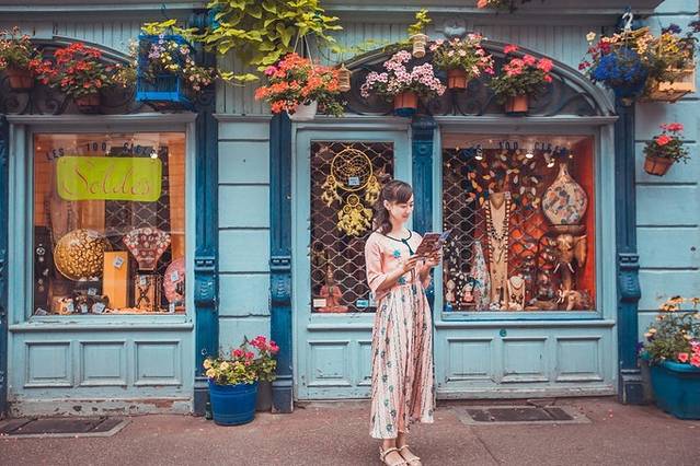在科尔马买明信片的时候就被一张明信片上的一个黄色转角给吸引了,这个更加冷门的小镇名字叫做埃吉桑,距离科尔马大约半小时的车程,如果可以自驾去的话是最理想的选择,因为我后来发现不仅仅是埃吉桑,这边一路上有数百计的这种风格的小村庄,每一个都让我惊喜不已,好想就在这样花园一般的地方住下来慢慢的老去啊,太符合我心目中对法式乡村的想象了!浪漫,优雅,精致又不失趣味。
