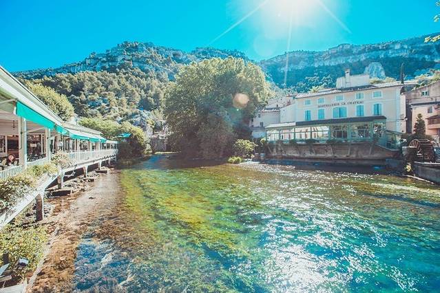 小团的行程大同小异,伴随着清晨的第一道阳光我们来到了著名的泉水小镇。从阿维尼翁开车Fontaine de vaucluse 大约需要半个小时,这个小镇子却是一个座落在碧水流淌,青山环绕之中的世外桃源 。