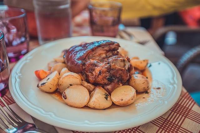 虽然地处法国 ,但是德国的美食佳肴却在这里随处可见。已经快被法国食物折磨的瘦的我们第一顿就选择了一道硬菜:德国烤猪肘子。我也不知道自己为何多烤猪肘这么情有独钟,从布拉格吃到慕尼黑再到科尔马 。只要有猪肘我就一定能吃到十分饱,但是这家店烤的有点甜,我们第二天在埃吉桑吃的更加正宗!