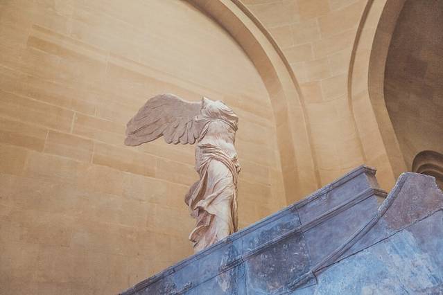 第二宝便是这胜利女神了,虽然她是希腊雕塑中的常见题材,但这一尊却与众不同。雕像的构思十分新颖,底座被设计成战船的船头,胜利女神犹如从天而降,在船头引导着舰队乘风破浪冲向前方,既表现了海战的背景,又传达了胜利的主题。虽然女神的头和手臂都已丢失,但仍被认为是古希腊雕塑家们高度艺术水平的杰作。