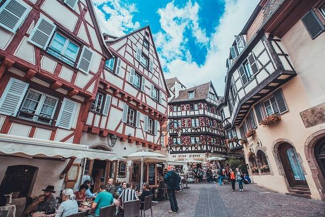 因为科尔马小镇处于法国东北部,这里同时靠近瑞士和德国 ,房子的建筑比较偏向于德国的风格。所以这里也有一个可爱的昵称:德法混血。