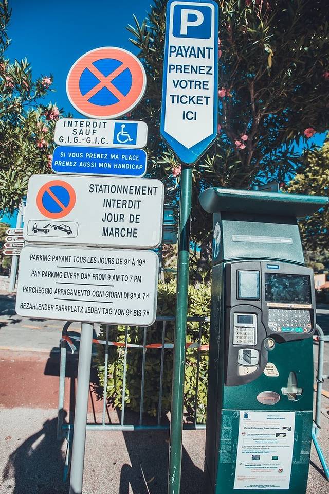 TIPS:法国的路边停车基本都是自助缴费,之前因为我们怕弄错不敢尝试,后面专门研究了一下还是挺简单的。一般在自助缴费的机器旁边就有这样的牌子,可以看到每个时间段停车的收费情况。所以 埃兹 的这个就可以看出每天只有早上9点到下午7点是需要缴费停车的,停车之前一般先要计算好自己大约需要停多长时间,然后在机器上购买相应的小时数,可以刷卡或者现金。因为我们是八点半到的,九点才开始收费,所以我们选择了两个小时,费用是3.2欧,价格算是相当便宜的了!购买好停车票后记得把类似于小票一样的东西放在车头窗子上,这样如果有人检查就可以看到你有没有购买停车票了~