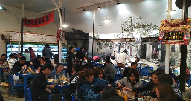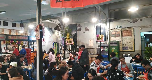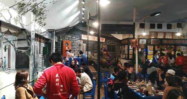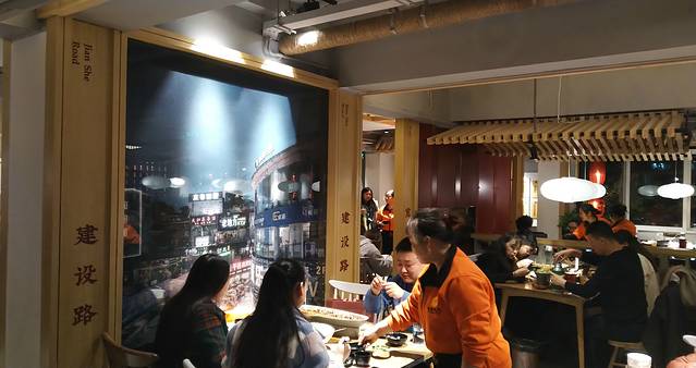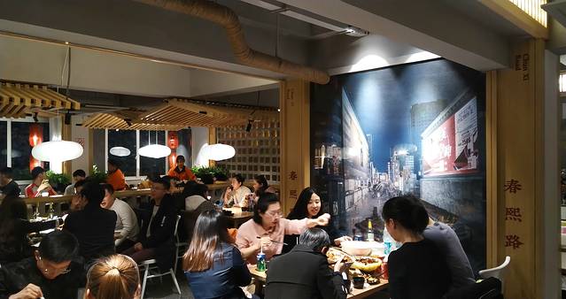 来成都这几天一直下雨,阴冷的感觉真的挺不好受。所以晚上夜宵果断和朋友约着去吃串串来驱驱寒。这家马路边边最近在南京好像也开店了店,朋友们去过的都夸好吃,那我就在成都试试。夜里十点多了,人真的爆满,还要在外面的冷雨里等位,也是不容易呀。店面装修得很有复古情怀,就连门头的字体都很好看,里面的布置及摆设更加让人惊艳,没有刻意去营造怀旧风,很自然而然的感觉。让人可以瞬间回到儿时的记忆里。虽然说环境不是那么高端精致,但是其实吃串串嘛本来就是要吃得过瘾豪放一些,那些所谓的网红店真的适合撸串吗?店员都穿着清一色的校服样的制服,服务周到且热情,上菜速度飞快。串串自己拿,价格比南京至少便宜一半吧,所以我们就随便都拿了些,以至于最后吃撑到!