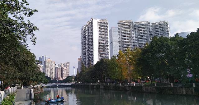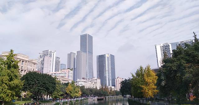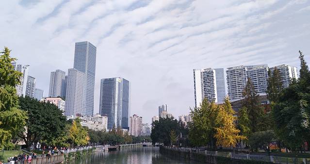 在我即将离开成都的最后一天,太阳出来了,蓝天白云闪现,我不知该笑还是该哭!于是趁着阳光正好,暴走成都。沿着东升街一路走到了成都的兰桂坊,跟香港应该是一家吧,其实和南京的1912差不多,就是普通的酒吧街区,晚上来的话恐怕会更加热闹,毕竟成都的夜生活还是比较丰富多彩的。这边算是成都的富人区,同样临河,透过成都的内河来观赏城市天际线,还是挺美的。再次感叹成都的建筑,非常简约大气,有种发达国家的既视感!