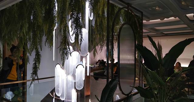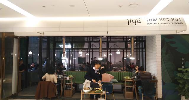 来成都,要说我最想吃的餐厅,其实并不是那些最能代表成都的,麻辣火锅、串串、川菜这些,而是一家刷爆全网的泰式火锅店,据说非常地道,而且免费的甜品小食贼棒,作为喜爱东南亚美食的我,必须要拔草啦!关键我就住在春熙路,走到晶融汇这边不要太方便,穿过一条满是火锅的巷子,就是晶融汇啦!抖音神店-集渔·泰式海鲜火锅(太古里店)近在眼前。在青旅放下行李,我和朋友立马赶往集渔排队和取号,我们去得早,算是第一波进店的客人,真是开心,省下了不少排队的时间!这家店很大,是开在晶融汇的临街,位置非常好,虽然并不在太古里街区里面。总共有三层,空间感很足,当然整个商场还是以写字楼为主,餐饮什么的人气不行,但这并不影响集渔生意兴旺。典型的网红风格,很像酒吧,不过又多了一些其他元素,也算是别出心裁。反正没有我讨厌的粉红色就是完美的。整体偏暗色系,给人舒服和复古的感觉。因为是东南亚系的餐厅,所以绿植非常多,仿佛走进了一座热带雨林,然而却是满屋子的冬阴功香气。还有零星tiffany色彩的运用,也为餐厅的整体视觉效果增色不少!