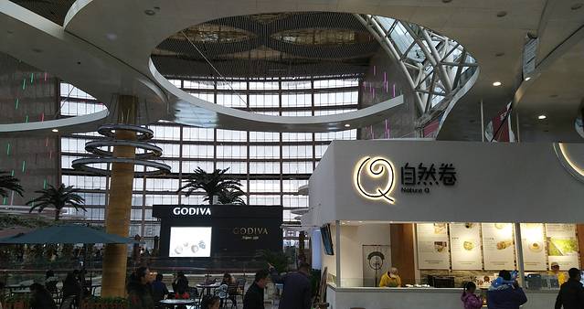 来成都的前两天一直下雨,我们只好选择开车绕成都转一圈,再去逛几个有代表性的商场,当然我逛来逛去还是觉得春熙路那两个最有意思!这个土奢路线的号称亚洲最大单体购物中心的环球中心,真的很一般,就是上海环球港的翻版,乐天集团搞的,倒也适合郊区家庭消费,人气不要太高。发现里面的吉野家居然是升级版,非常好看了,北欧风!周六的成都依然堵车,新区确实建设得有模有样,规格比南京的河西要高。开车路过川大门口的梧桐大道,挺美的,和南京很像了,打算等明天天气放晴,来川大这边走走看看。