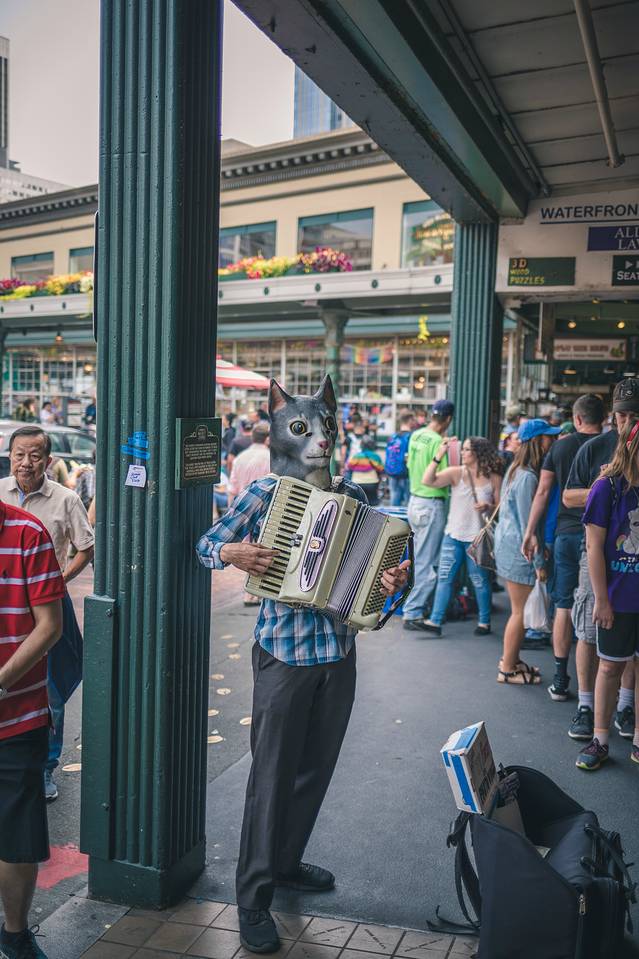 街头艺人也是派克市场中不可缺少的必要元素之一,无时无刻不在吸引着人们的视线