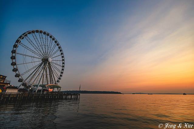 凯瑞公园有着可以观望整个 西雅图 市区最佳的视角,它虽然叫公园,但其实就是一小片绿地,更像是一个观景台。白天从这里看过去,远没有晚上看的效果好,所以我们打算晚上再过来。不过这次也不算白来,碰到几个自弹自唱的街头艺人,唱得还真挺好听的,看了会儿热闹,给这几位音乐人贡献了几美金后我们就转站摩天轮了。