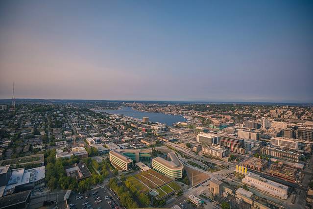 Tips:尽管是八月盛夏,但下午过后的太空针塔上面还是挺冷的,我们去的时候风也比较大,建议带一件稍微厚一点的外套,短裤短袖的话真的会有点吃不消!