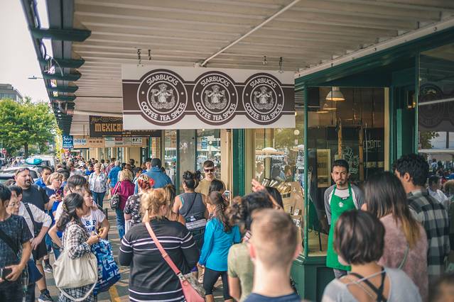 西雅图 是一个可以像一杯咖啡一样被仔细品味的城市,闲适惬意的生活因为这些简单的咖啡文化被赋于了一种别样且富有情趣的色彩。她虽然并不拥有最多的咖啡厅,但是却拥有着对咖啡有着极大热爱的人们,来消耗掉最多的咖啡豆。走在派克市场附近的街上,你会发现每一个街角都有一间咖啡厅。其中最有名的第一家星巴克就坐落在Pike 1912号。