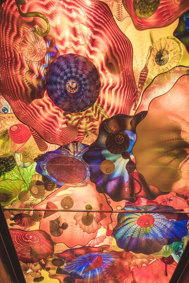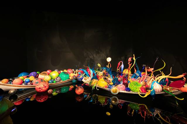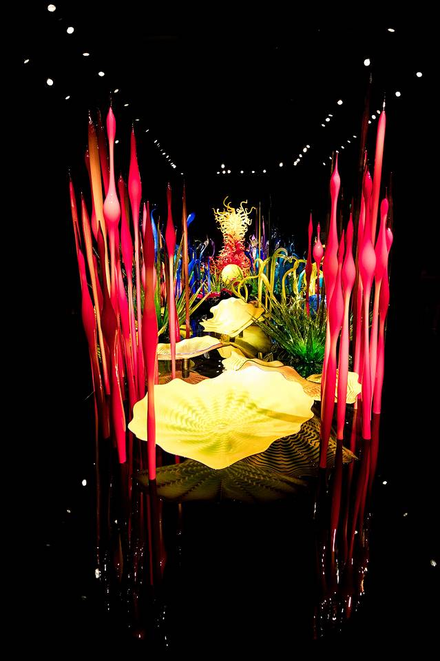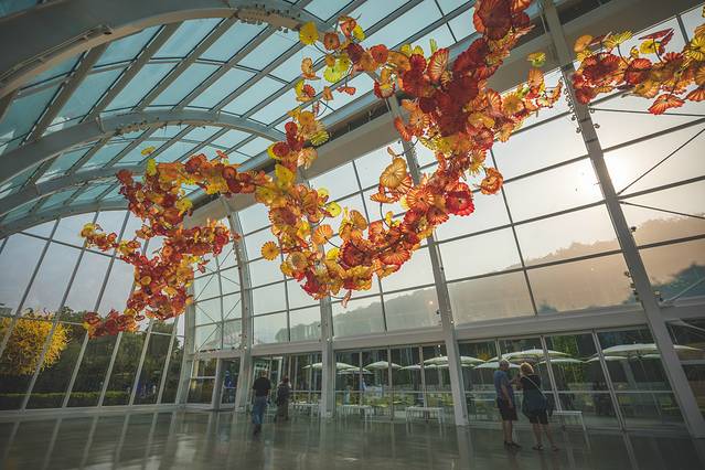 这座艺术园中收藏了大量 美国 著名艺术大师Chihuly的玻璃作品,Las Vegas 的 Bellagio 酒店大厅里的玻璃艺术品、 迪拜 亚特兰蒂斯酒店大厅的巨大海底珊瑚丛也均是出自这位大师之手哦。