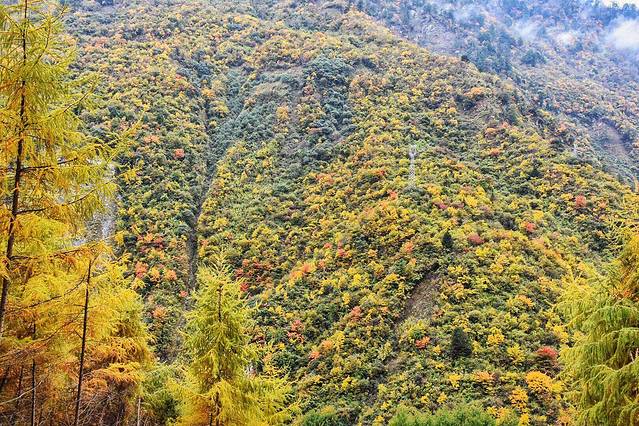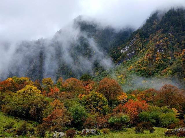 卧龙的可能与其它地方的秋不同,不同在它那茂密的森林漫山遍野都是五颜六色的植被简直不要太漂亮。