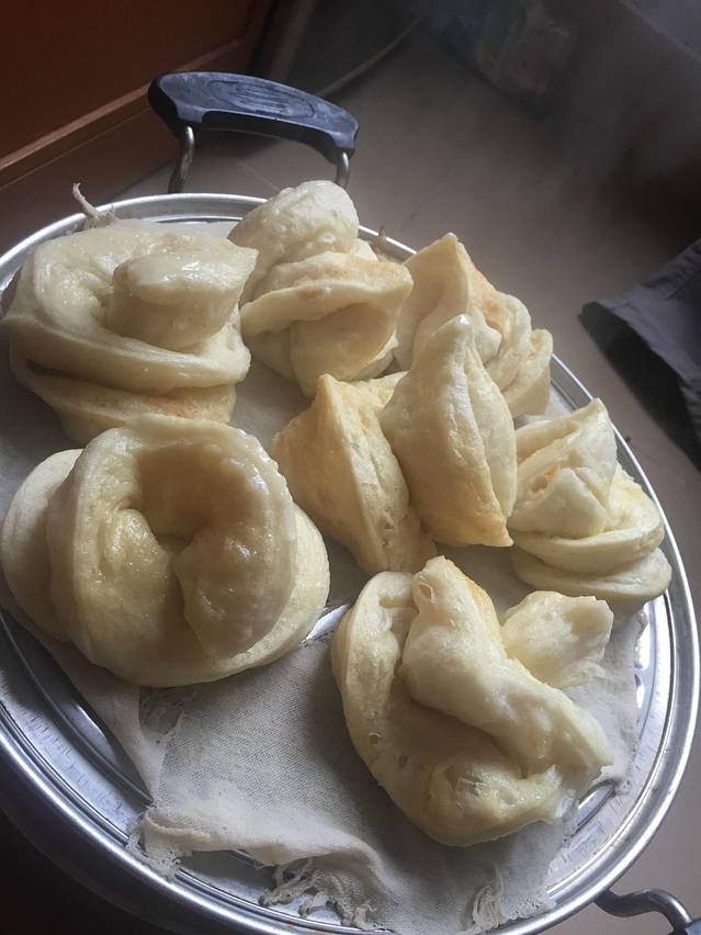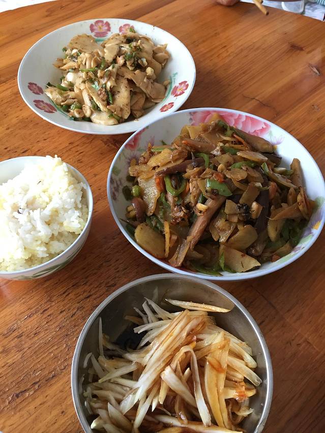 这种天气就要吃的更舒服哈哈哈,溜达一上午回家爸爸已经蒸好花卷了,好诱人哦,于是又炒了家人都爱吃的三鲜,有炒了个笋,哈哈南方就是好,鲜的冬笋,好吃~~