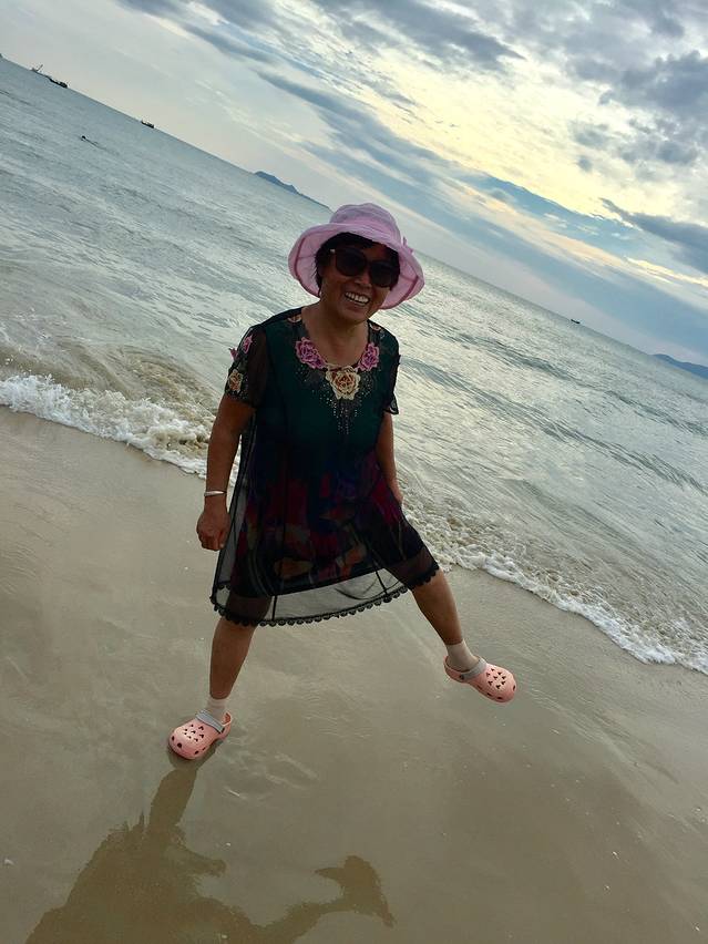 妈妈拍照很随意,其实人处于美景之中本身就很美了有木有~