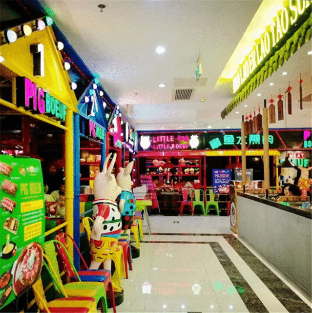 这家店就在步行街,是逛街后温饱的好去处,装修风格很鲜明,一眼就能看到。