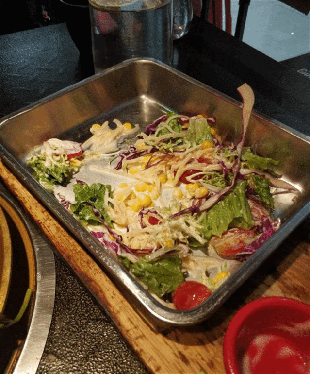 套餐里有很多种肉类,肉眼都分不清了,反正一上菜就会有小哥哥小姐姐帮忙烤好。