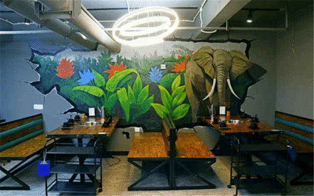 这里的用餐环境,大自然和动物的墙画交汇,让大家感觉到用餐的愉悦。