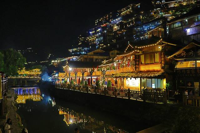 步行街区域的表演场有看苗族歌舞表演,时长约30分钟。你也可以参观西江苗族博物馆、鼓藏头(苗王的屋子,屋内供着圣物铜鼓)。或者沿着白水河走走,看看河上有屋檐遮风挡雨的风雨桥,矮矮窄窄用木头平铺的栈桥。