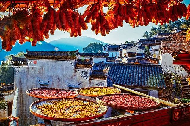 篁岭是婺源东线上一个典型的山居村落,当地村民自古就有用竹晒匾晾晒农作物的习俗