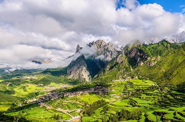 扎尕那位于甘南藏族自治州迭部县,是一圈俏丽的崖壁包裹中的一个藏族小村寨,风景秀丽奇幻,是整个甘南藏区风光最为优美的地方之一