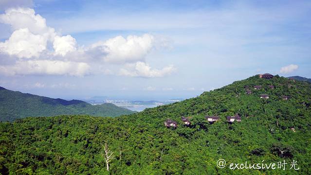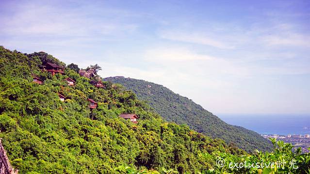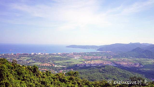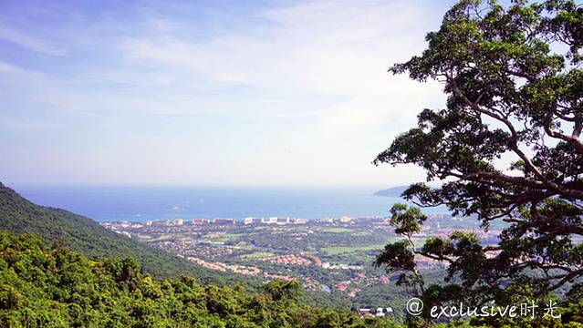 往山上爬的时候,能看到越来越漂亮的俯瞰风光。这样看起来,三亚的建筑全部都是笼罩在绿植下了,难怪这里的生活质量这么高了啊。