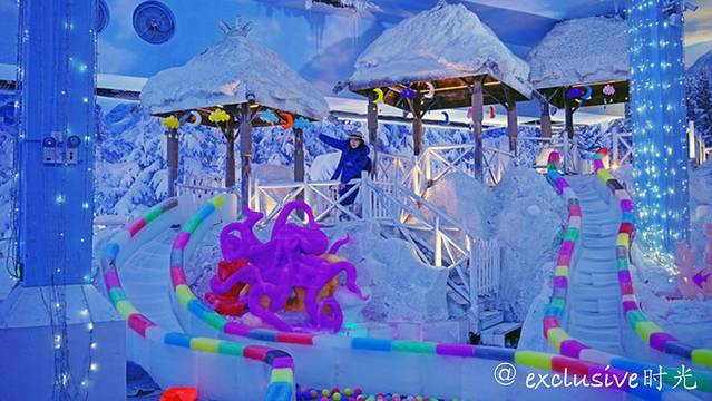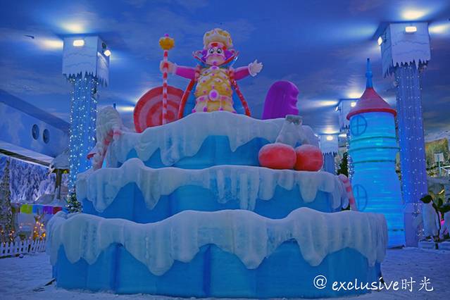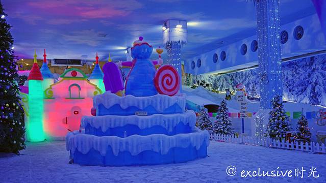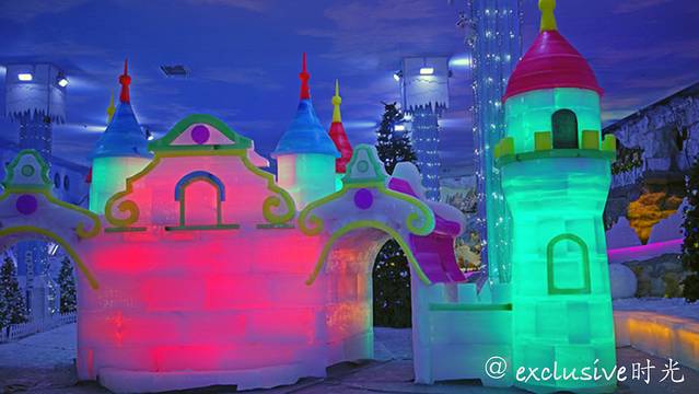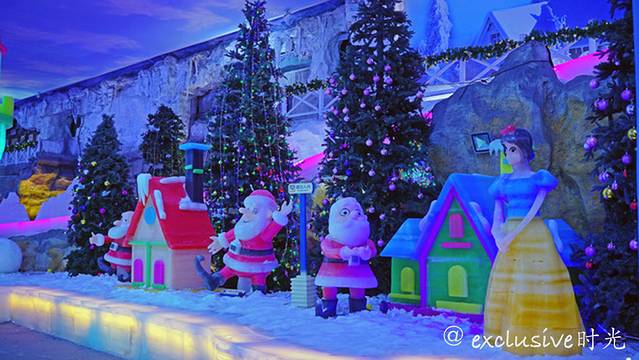 看看这里的冰雪王国。和哈尔滨的比较起来,这里的更为精致一些。有圣诞老人,爱莎公主什么的。是小孩子们会非常喜欢的场景。