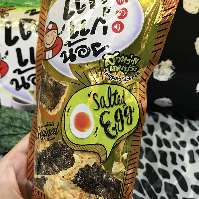 小老板海苔的特色是香脆可口,脆脆的口感是其他海苔没有的!海苔是富含蛋白质的食物,非常不错的零食,比起薯片之类的也更健康,口感也足以匹敌。这款是新出的咸蛋黄味道,超级好吃哦~~~ 浓郁的香,没有国产海苔那么腥,轻微咸味,很可口。推荐买买买!特别是担心过敏的朋友。
