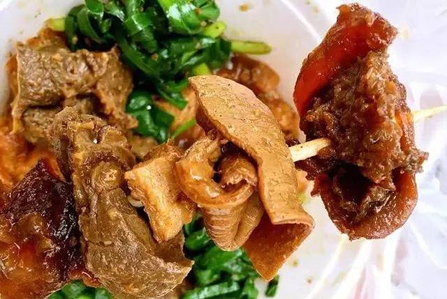 没招牌,没固定摊位,没吆喝,没座位,一但开档就大排长龙,阿婆的牛杂选材讲究,酱料都自己调制的,汤汁放入精选黄糖熬煮,有点甜但又十分香浓,牛杂处理得好很干净,夹上一小块放入口中,鲜香瞬间溢满整个口腔。婆婆的牛仔很实惠,20块一大碗吃到饱,但是因为年迈,婆婆只是偶尔摆摊了,原谅我感慨下,吃顿好的不容易啊,还得拼人品。