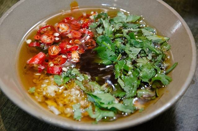 用小米辣和蒜末制成的沾碟,先尝一下羊肉,果然新疆的小绵羊不像四川这边的羊肉膻味重,里面的羊肉因此吃起来肉质嫩而鲜美,而且炖制一个多小时骨头都可以连着肉一起吃掉,鲫鱼鱼肉肉质细嫩,加入豌豆尖煮过的汤汁多了一分青菜香味,再来一碗汤热热身子,吃完身上也没有什么羊膻味,极力推荐吃货朋友赶快约起来。