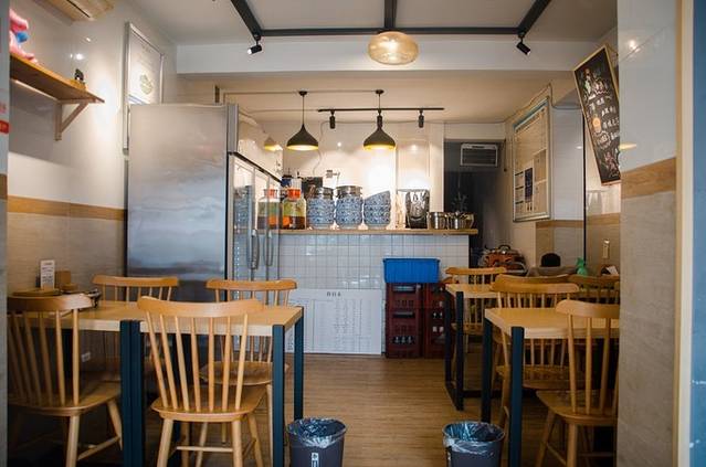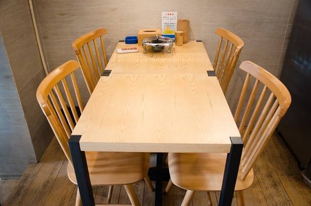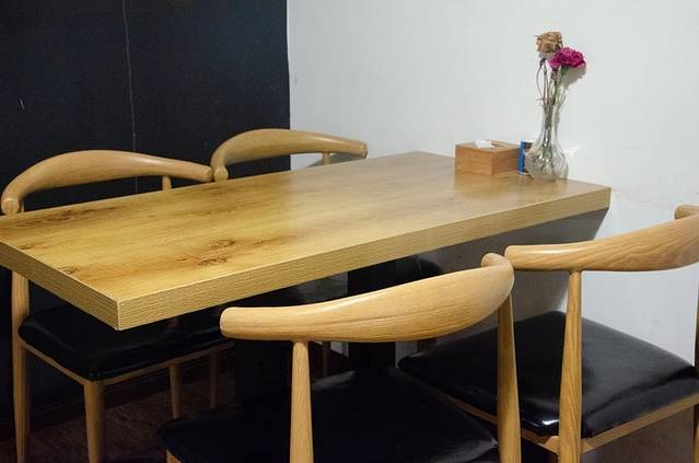 走进里面,整个馆子面积不大,室内总共只有五六张桌子,不同于其他高大上的餐厅,这里更加安静更像是一个享受美食的地方,整个空间虽然紧凑但摆放整齐,装修也是比较简单,原木色的桌椅给人感觉相当干净、整洁。