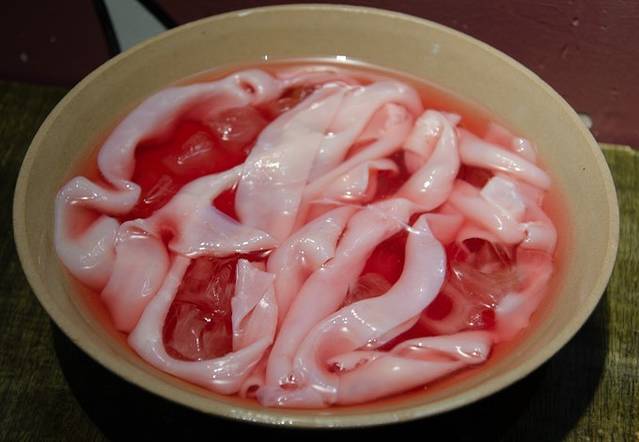 鸭肠和鹅肠是否新鲜,看色泽就知道,尛尛家的鸭肠据说是每天专程去成都周边采购,这样做的只是为了让食客吃到绝对新鲜的菜品,这样的鸭肠,大火下锅,七上八下,怎一个脆字了得。