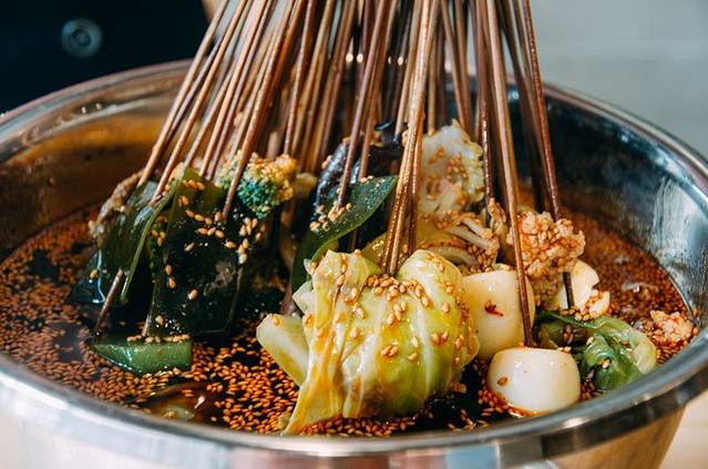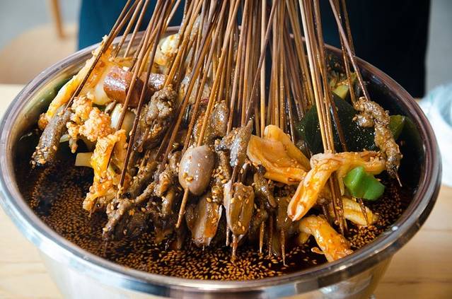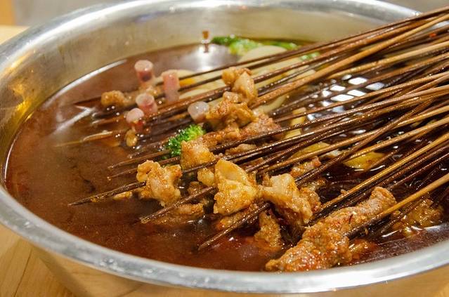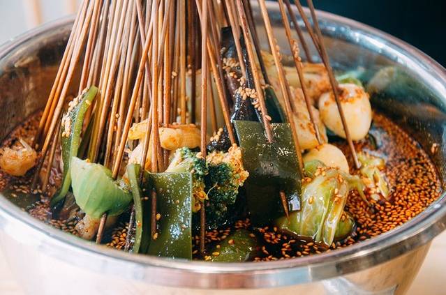 串串端上来,闻到味道就超满足,里面的小郡肝和牛肉特别推荐,小郡肝特别推荐,口感很脆,牛肉入味一点儿也不老还非常有嚼劲,而且签签上的肉都是一大块,素菜不用说当然就更入味啦。
