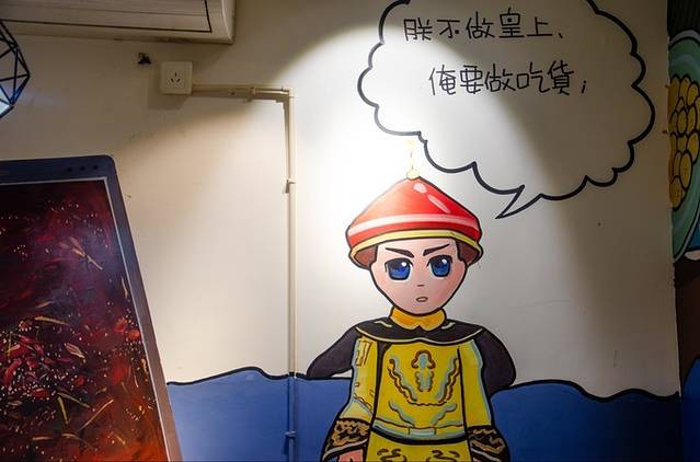 “朕不做皇上,俺要做吃货”,一进门就看见墙上的吃货皇上了,很喜欢这些有意思的墙绘,把火锅店的形象和四川元素体现的淋漓尽致。